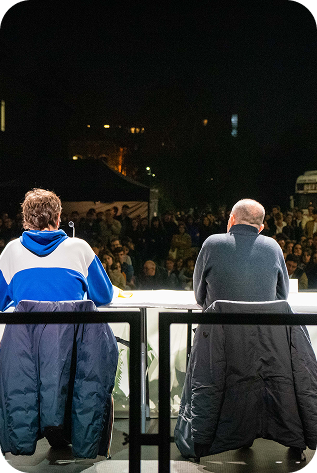 Sarà allestito un palco al centro del MuD per ospitare una serie di incontri. Gli ospiti saranno persone che ci hanno stupito per l’umanità con cui hanno affrontato i tre ambiti sopra citati. Gli incontri saranno un dialogo con gli studenti che li hanno organizzati.